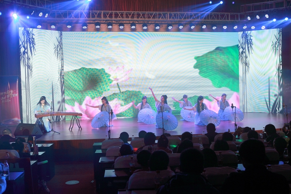 文藝匯演融聲樂、器樂、舞蹈、相聲、小品、朗誦、情景劇等多種藝術(shù)形式為一體,青春時(shí)尚元素與傳統(tǒng)元素完美結(jié)合,多角度、多視點(diǎn)營(yíng)造出昂揚(yáng)向上、全員同樂的節(jié)日氣氛。