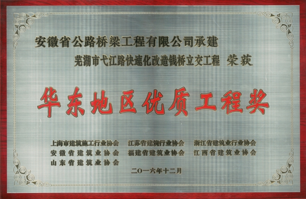 近日,由公司承建的G206公路(南崗-上派段)改建工程4標(biāo)、蕪湖市弋江路快速化改造錢(qián)橋立交工程喜獲2016年度“華東地區(qū)優(yōu)質(zhì)工程獎(jiǎng)”。