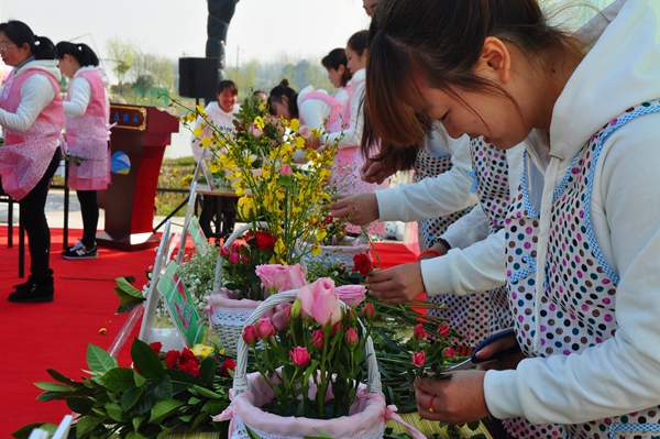 在主題為“最美的花兒獻(xiàn)給你”的花藝比賽中,來自兩家單位的十位女職工沉著冷靜,認(rèn)真挑選花材,巧妙構(gòu)思作品,優(yōu)雅的動(dòng)作,嫻熟的技藝,使得一個(gè)個(gè)設(shè)計(jì)新穎、造型亮麗的花藝作品呈現(xiàn)在觀眾面前,為三月的龍舒大地增添了幾許春色。在 “百花齊放”踩氣球友誼賽中,兩家單位女職工自由組合,隨著主持人的一聲令下,選手們一沖而上,互相踩破對(duì)手的氣球,比賽氣氛熱烈,充滿激情,吶喊聲、歡笑聲匯聚成一條快樂的河流。在團(tuán)體跳繩比賽中,兩隊(duì)隊(duì)員齊心協(xié)力,熱情高漲,彩繩離地起,群鳳當(dāng)空舞,盡情演繹著巾幗魅力,把現(xiàn)場(chǎng)氣氛推向高潮。