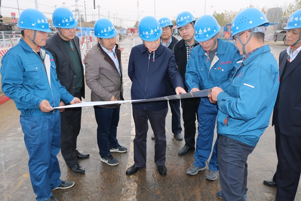 集團公司總經(jīng)理助理、工程管理部主任童宗勝,公司董事長、黨委書記、總經(jīng)理孫學軍,副總經(jīng)理錢申春等陪同。