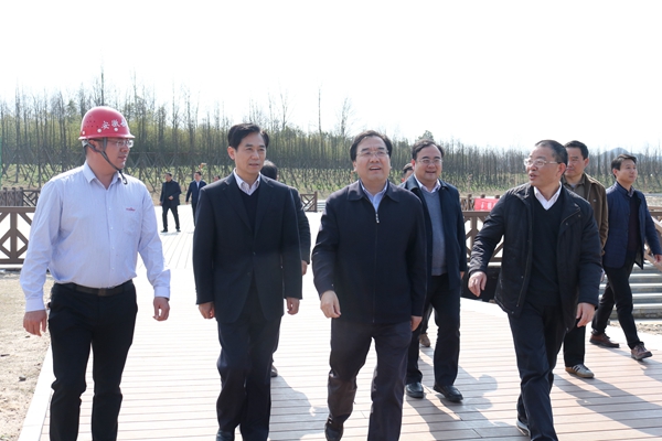 信長星一行深入江心洲園區(qū)實地查看工程建設情況,詳細了解工程規(guī)劃、面積、投資等情況,對苗木種植養(yǎng)護及濕地建設提出了指導性意見。信長星強調(diào),在施工過程中一定要進一步加大對濕地生態(tài)系統(tǒng)的保護,提高生物多樣性。