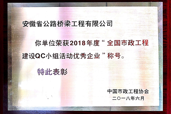 6月23日,2018年度全國(guó)市政工程建設(shè)優(yōu)秀QC小組成果發(fā)布及表彰會(huì)在昆明召開,由市政分公司組織選送的六項(xiàng)成果全部獲獎(jiǎng),公司榮獲2018年度“全國(guó)市政工程建設(shè)QC小組活動(dòng)優(yōu)秀企業(yè)”榮譽(yù)稱號(hào)。