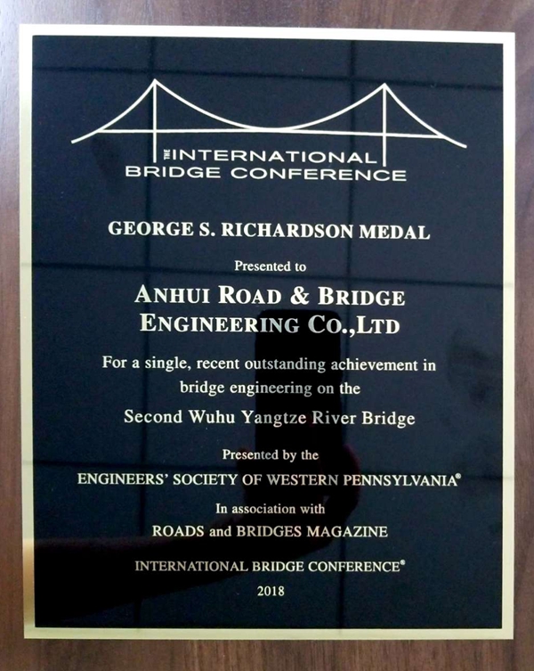 2018年6月,由公司參建的蕪湖長江公路二橋榮獲第35屆國際橋梁大會(IBC)最高獎——喬治·理查德森獎,這也是公司首次榮獲該項(xiàng)國際大獎。