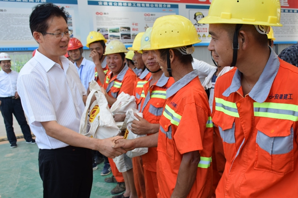 8月3日,淮北市委常委、紀(jì)委書記宰學(xué)明在市紀(jì)委監(jiān)察委和市總工會相關(guān)負(fù)責(zé)人的陪同下,深入淮北市S101及S254改建工程PPP項(xiàng)目施工現(xiàn)場,看望慰問公司一線參建人員。