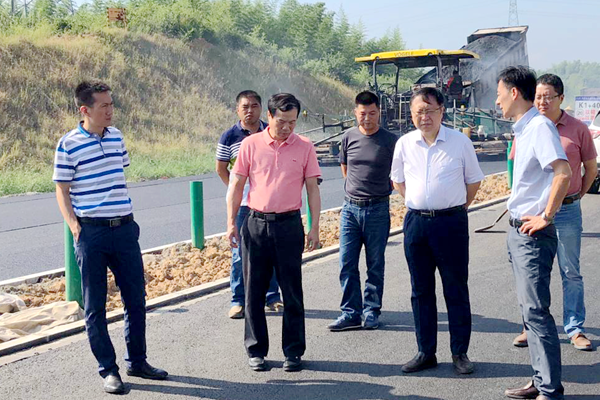 省交控集團總經理錢東升蒞臨廣寧高速路面項目檢查指導工作 發(fā)布時間:2018年08月10日 來源:路面公司 發(fā)布人: 作者:圖/文 褚祥 葛偉 瀏覽:3482次 8月8日,省交控集團總經理錢東升、建管部部長蘇新國一行蒞臨廣寧高速路面項目檢查指導工作,廣寧高速項目辦主任方昱陪同。 錢東升一行深入瀝青施工現場,對正在進行的瀝青攤鋪施工進行了檢查指導。錢東升要求項目部要統(tǒng)籌應對此輪材料價格上行壓力,多措并舉加快瀝青料的儲備,積極搶抓有利天氣進一步加快施工進度;同時要做好防暑降溫工作,確保廣寧高速按既定時間節(jié)點順利通車。