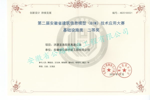 公司榮獲第二屆安徽省BIM技術(shù)應用大賽二等獎