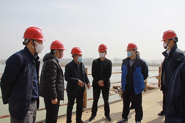 章后忠、張玉強一行詳細(xì)了解了項目疫情防控及復(fù)工進展情況,實地檢查了澮河特大橋樁基施工。
