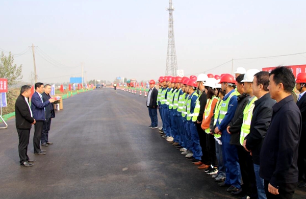 10月30日上午,歷經(jīng)七個(gè)月的奮戰(zhàn),淮北G237項(xiàng)目路面工程全線貫通?;幢笔薪煌ň贮h組書記、局長韓海林,副局長苗中治,淮北市公路管理服務(wù)中心黨委書記、主任楊國棟,公司黨委副書記、總經(jīng)理錢申春,黨委委員、副總經(jīng)理杜海峰到場祝賀,并看望慰問全體參建人員。