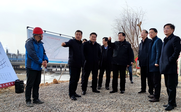 袁方先后查看了S247(圍烏路)改建工程和S105(犁尖灣-聯(lián)合西路)改建工程慈湖河大橋段施工現(xiàn)場,向不畏嚴寒搶抓項目建設的參建人員表示慰問。