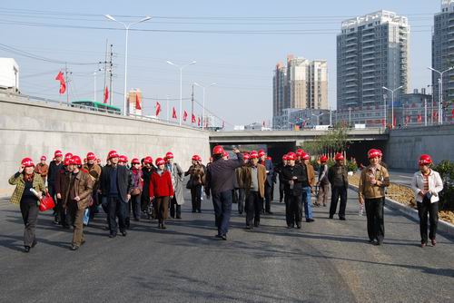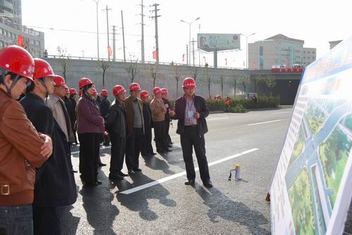 下午三點左右,在項目經理李建成的引導下,觀摩團全體成員來到展牌前,聽取了項目工程的介紹,詳細了解了公司近幾年施工的大型精品工程。隨后,觀摩團沿北二環(huán)下穿路面至下穿橋下,觀看橋梁施工的成品工程,最后至項目穎河路瀝青攤鋪現(xiàn)場,對正在施工的項目進行了實地察看。在穎河路攤鋪瀝青現(xiàn)場,當觀摩團得知項目部為了確保工程質量,采用優(yōu)質的進口的SMA型瀝青時,無不交口稱贊。