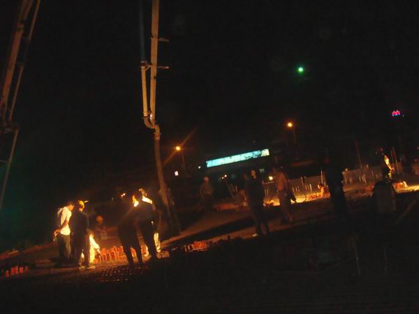 傍晚時(shí)分,項(xiàng)目部組織精干力量、調(diào)集性能良好的機(jī)械設(shè)備陸續(xù)進(jìn)入引橋澆注場(chǎng)地。18:00隨著一陣隆隆的炮竹聲響過(guò),淠望路大橋引橋首跨上部結(jié)構(gòu)的混凝土澆注便正式開(kāi)始了,此次澆筑的混凝土位于大橋10號(hào)墩與11號(hào)墩之間,混凝土體積320方?,F(xiàn)場(chǎng)施工人員克服重重困難,把安徽路橋人的特別能吃苦特別能戰(zhàn)斗的精神發(fā)揮得淋漓盡致;經(jīng)過(guò)十多個(gè)小時(shí)的連續(xù)工作,于2009年6月22日凌晨五點(diǎn)圓滿完成了首跨混凝土的澆筑,受到業(yè)主、監(jiān)理單位的肯定和贊揚(yáng),同時(shí)也為今后引橋上部結(jié)構(gòu)混凝土的澆筑工作積累了經(jīng)驗(yàn)。