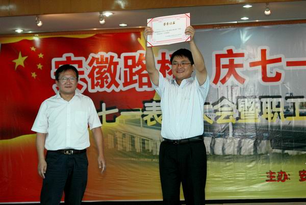 上午8:30,在表彰大會上,橋梁公司黨支部榮獲了“先進黨支部”優(yōu)秀稱號,支部書記劉振嶺獲得“優(yōu)秀黨務(wù)工作者”稱號,公司員工錢申春、李建成等人榮獲“優(yōu)秀黨員”榮譽稱號,北二環(huán)項目部趙明星紀(jì)念改革開放征文二等獎。這些榮譽稱號不僅僅是橋梁公司黨支部和黨員的光榮,也是對他們工作的充分肯定。在過去的一年里,橋梁公司全體黨員在公司黨委和橋梁黨支部的直接領(lǐng)導(dǎo)下,做了大量的基礎(chǔ)性工作,各項目部努力爭創(chuàng)“黨員先鋒號”和“青年文明號”工程,黨員同志在各自崗位上充分發(fā)揮了先鋒模范作用。特別是今年4月30日,橋梁公司以科學(xué)發(fā)展觀為指導(dǎo),著手加強員工團隊意識培訓(xùn),取得了較好的成績。