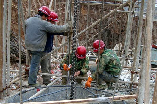 本次通過驗(yàn)收的4號(hào)主體橋墩挖孔樁工程是巖子腳特大橋第一個(gè)橋墩工程。項(xiàng)目經(jīng)理劉曉晗和項(xiàng)目總工胡學(xué)祥高度重視,考慮到人工挖孔操作安全的重要性和本次工程涉及到爆破作業(yè),在開挖之前,劉經(jīng)理和胡總工特別為此召開挖孔樁專項(xiàng)安全會(huì)議,對(duì)施工人員進(jìn)行全面的安全技術(shù)交底。要求項(xiàng)目部現(xiàn)場(chǎng)技術(shù)人員必須認(rèn)真學(xué)習(xí)和熟悉圖紙,安全人員必須每天到現(xiàn)場(chǎng)檢查安全事項(xiàng),要求施工隊(duì)負(fù)責(zé)人必須做到按操作規(guī)程施工;同時(shí)作出規(guī)定,任何一個(gè)環(huán)節(jié)不符合操作規(guī)程,立刻停工整頓并處罰相關(guān)人員。在此基礎(chǔ)上,4號(hào)橋墩挖孔樁工程不僅完成速度快,而且質(zhì)量和安全得到了充分的保證。
