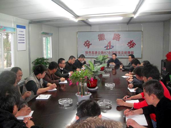 會上,劉大雷經(jīng)理向全體員工傳達了五屆二次會議的工作內(nèi)容要點,并帶領大家重點學習了公司總經(jīng)理汪衛(wèi)東關于《夯實管理基礎,拓展發(fā)展空間,為推動安徽路橋快速發(fā)展而努力奮進》的工作報告。項目部成員結(jié)合A7標施工實際,就汪總工作報告中闡述的2010年奮斗目標和工作思路等內(nèi)容,進行了深入探討。瑞尋高速工程作為我公司進駐江西市場戰(zhàn)略中第一個中標項目,A7標的工作目標不僅僅是完成這一具體工程,更深層次的是要打造品牌質(zhì)量,樹立起公司形象,進而開拓江西市場。在具體思路上,要以“和諧、奮進、創(chuàng)新、共贏”為宗旨,制定好周、月以及季度的施工計劃,強化項目管理,提高經(jīng)濟效益。同時,劉經(jīng)理提出工程的季度產(chǎn)值目標和年度產(chǎn)值目標,希望各部門、各工區(qū)相互配合,共同完成每個階段的工程任務。