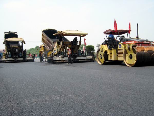 在項(xiàng)目部瀝青拌合場地,記者們在梁局長及項(xiàng)目部經(jīng)理王煒生同志的帶領(lǐng)下,參觀了橡膠瀝青的拌合設(shè)備,了解了整個(gè)瀝青混凝土的拌合過程,并進(jìn)行了實(shí)地拍攝。