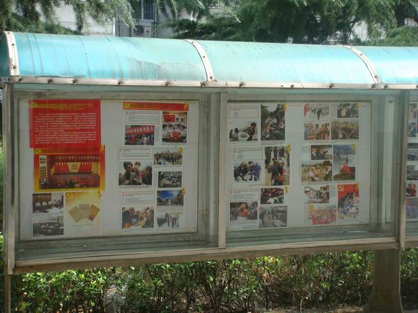 在隆重紀(jì)念中國共產(chǎn)黨成立89周年的日子里,四分公司黨總支根據(jù)公司黨委的部署要求,積極開展創(chuàng)先爭優(yōu)活動(dòng),在后勤基地,利用宣傳櫥窗,舉辦創(chuàng)先爭優(yōu)活動(dòng)宣傳圖片展,引來不少行人駐足觀看。