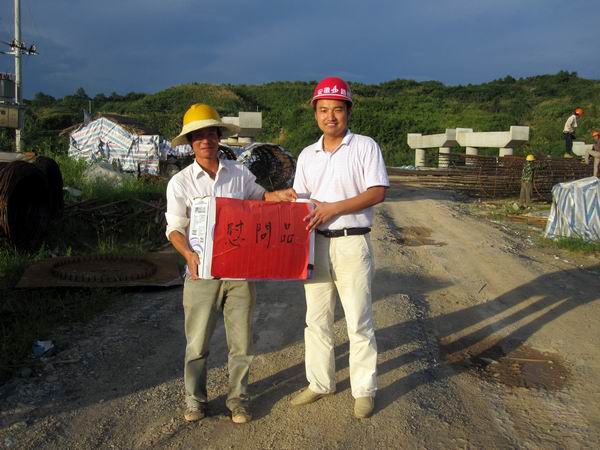 入夏以來,黃祁高速公路建設(shè)沿線地區(qū)持續(xù)高溫,廣大項(xiàng)目員工冒著高溫酷暑始終堅(jiān)守在一線,為加快施工進(jìn)度而不懈努力。2010年7月18日下午,我部項(xiàng)目經(jīng)理黃華及項(xiàng)目部主要管理人員深入施工現(xiàn)場(chǎng),慰問廣大員工,檢查各工區(qū)施工隊(duì)伍防暑降溫工作的開展情況,并將防暑降溫用品發(fā)放到各工區(qū)施工隊(duì)。