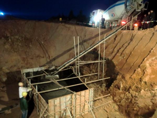澆筑工作開始前,項(xiàng)目經(jīng)理與安全部部長(zhǎng)對(duì)施工計(jì)劃和施工安全作了詳細(xì)的安排和部署。當(dāng)日下午4時(shí)30分,江西大廣B1標(biāo)K31+744開始澆筑首個(gè)鋼筋砼蓋板通道基礎(chǔ),為嚴(yán)格控制澆筑質(zhì)量、保證施工現(xiàn)場(chǎng)安全,項(xiàng)目部技術(shù)員與安全員均到現(xiàn)場(chǎng)進(jìn)行了詳細(xì)的施工技術(shù)交底和安全技術(shù)交底。