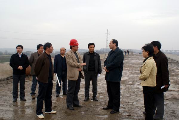3月21日上午,市人大副主任楊世群在市、縣相關(guān)部門領(lǐng)導(dǎo)陪同下,也冒雨來到我青弋江橋項(xiàng)目視察。楊主任一行在橋上走了一遍后,對(duì)項(xiàng)目部指出:這條路市、縣人大代表每年都有呼聲,你們一定要確保4月15日實(shí)現(xiàn)通車的目標(biāo),給三縣老百姓帶來交通便利。