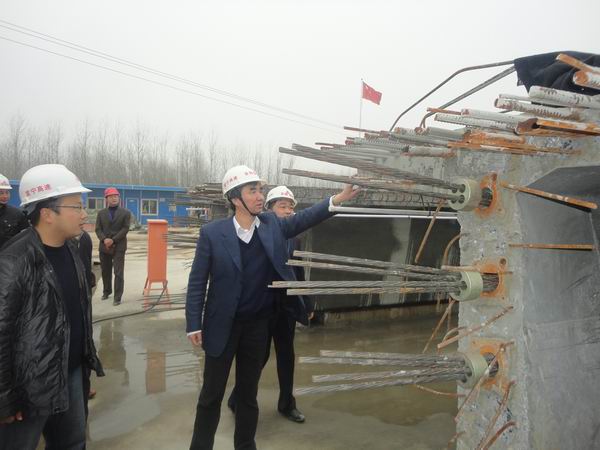 視察過程中,何站長對(duì)我部預(yù)制梁場(chǎng)的施工質(zhì)量、工藝給予了充分的肯定和贊揚(yáng),通過察看安全警示牌、詢問現(xiàn)場(chǎng)安全員,對(duì)我部安全工作的全面細(xì)致也豎起了大拇指,并對(duì)我安徽省公路橋梁工程公司表達(dá)了由衷的贊許。在肯定我們的工作成績的同時(shí),何站長也要求我們要繼承和發(fā)揚(yáng)安徽省路橋公司的優(yōu)良傳統(tǒng),細(xì)化工作、進(jìn)一步提高工程質(zhì)量。