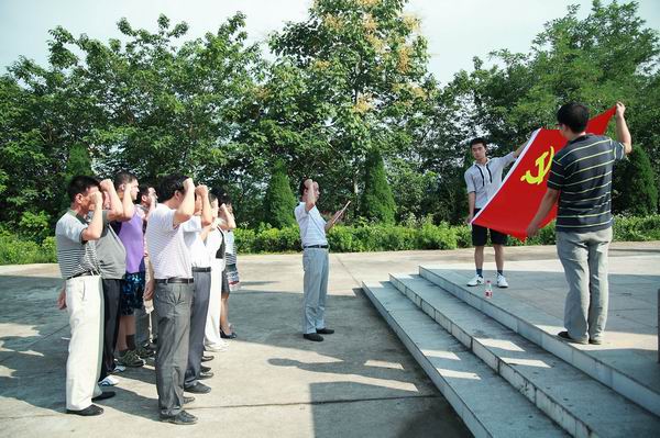 黨員大會有四項議程:一、傳達學習陳光磊書記在公司慶祝建黨90周年暨兩先兩優(yōu)表彰大會上的講話;二、討論預備黨員鄧光文、張躍文轉正事宜;三、討論接收入黨積極分子許淵為預備黨員事宜;四、前往獨山革命舊址群瞻仰參觀。