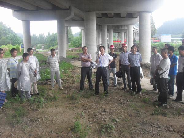 此次觀摩會由項目辦組織,總監(jiān)辦結構工程師杜寶主持。針對護欄砼工程的施工工藝、施工程序、工程質(zhì)量及現(xiàn)場管理,蔣小敏副經(jīng)理作了詳細的匯報。杜寶工程師對主要工序及主要控制要點進行了現(xiàn)場指導。