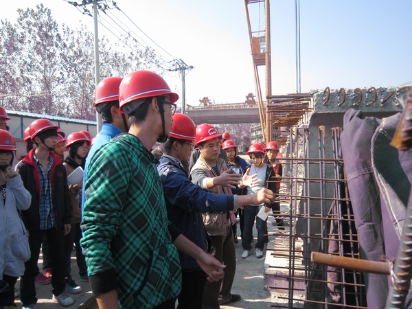 傅總首先對師生們的到來表示歡迎,并簡要介紹了該項目的相關(guān)情況。隨后,該項目熊祖發(fā)為參觀學生上了一堂精彩的理論課,熊祖發(fā)對照施工進度圖向同學們詳細介紹了項目施工流程、難點、重點以及工程造價組成。為加深印象,熊祖發(fā)帶領(lǐng)師生實地參觀了主橋、鋼桁架梁、預(yù)制梁場等施工現(xiàn)場。每到一處,同學們都被精致的工藝所折服,紛紛稱贊安徽路橋不愧為一家大企業(yè),并當場表達了加盟路橋公司的愿望。